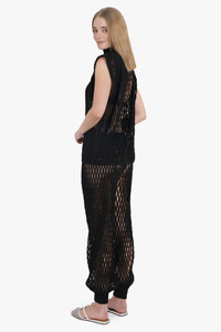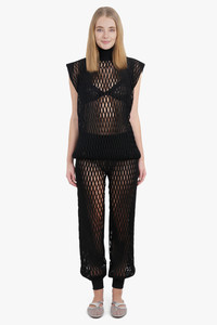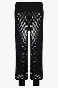 - Fabrication: - 65% Viscose, 25% Polyester, 6% Linen, 3% Polyamide, 1% Elastane - Macrame openwork knit pants - Wide leg - Wide low-rise waistband - Ribbed knit hems - Gathered ankles Size and Fit Sophie: Model is 179cm/5’10” and is wearing a size FR36 Model Measurements: Bust: 76cm, Waist: 61cm, Hips 87.5cm French sizing Fits true to size Measurements 36: Waist 76cm, Hip 84cm, Length 102cm 38: Waist 80cm, Hip 88cm, Length 102cm