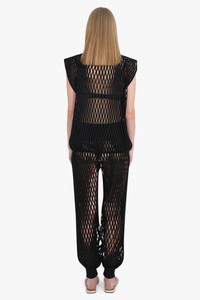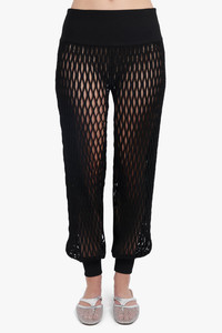 MACRAME KNIT RELAXED ELASTIC CUFF PANT | BLACK