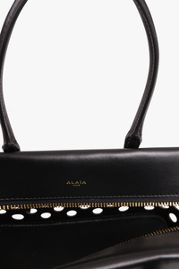 The Alaia Neo Mina 20 Perforated Bag is a shoulder style bag with the iconic Vienne perforated detailing. The bag features a gussette style shape and can comfortably fit an iPhone Max size phone inside. Made in Italy. Fabrication: Main: 100% Calfskin Leather Lining: 100% Lambskin Leather Measurements Length 20cm x Height 13.5cm x Depth 10cm
