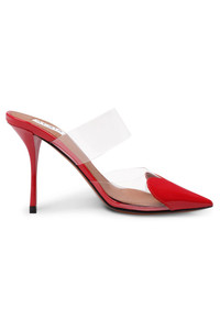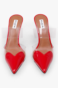 PATENT CALFSKIN 90MM HEART MULES | RED