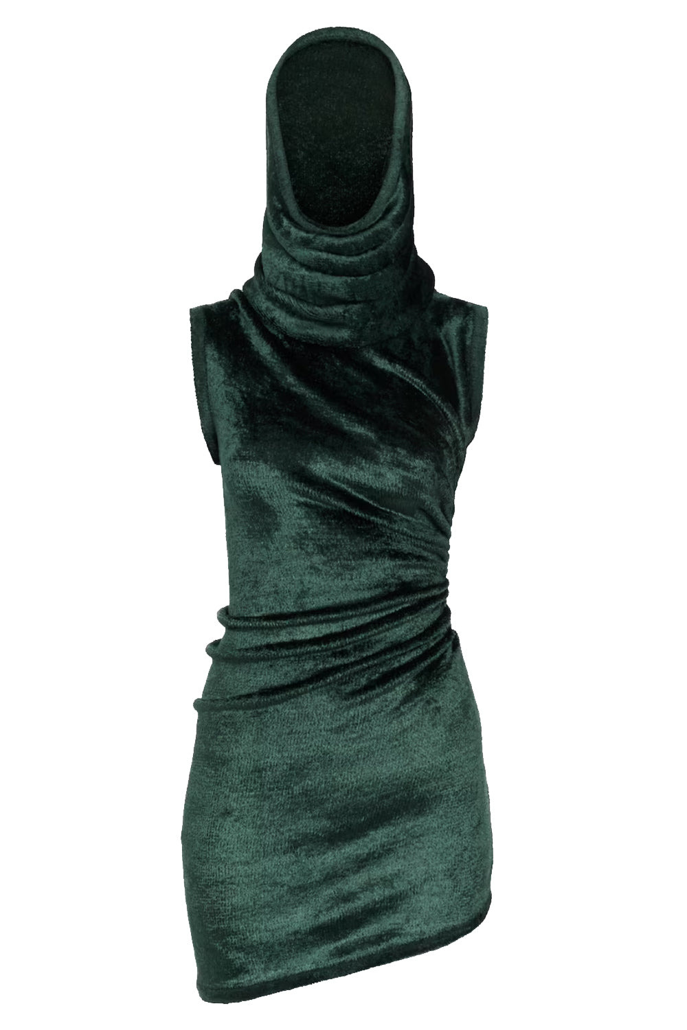 SHINY VELVET MINI HOOD DRESS | FOREST GREEN