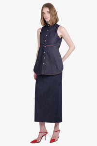 SLEEVELESS DENIM BLOUSE | DARK BLUE