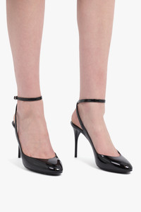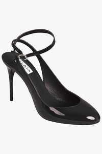 - Fabrication: 100% Calfskin Leather - Patent Leather - Heel sling-backs - Cross ankle straps - Elegant front low cut Size and Fit Fits true to size French sizing Heel height: 90mm