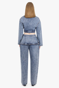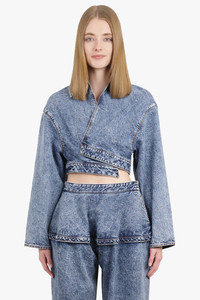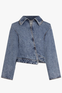 SPIRAL WRAP CROPPED L/S DENIM JACKET | SNOW BLUE