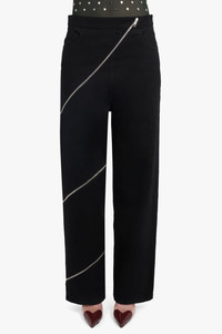 SPIRAL ZIP DETAIL STRAIGHT LEG PANT | BLACK