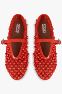 BALLET FLATS WITH STUDS ON FISHNET