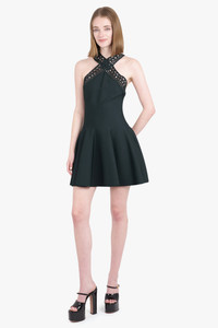 The vivienne skater crossed dress features a fitted lace neckline and voluminous mini skirt. Fabrication: 75% Viscose, 25% Polyester Size and Fit Lacey: Model is 180cm/5’11” and is wearing a size FR36 Model Measurements: Bust: 86cm, Waist: 72cm, Hips 89cm French sizing This style fits true to size Measurements Size 36: Bust 78cm, Waist 64cm, Hip 84cm, Length 94cm Size 38: Bust 80cm, Waist 66cm, Hip 86cm, Length 94cm Size 40: Bust 84cm, Waist 70cm, Hip 90cm, Length 94cm