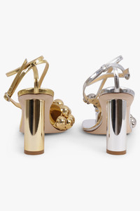 A sculptural study in contrast and asymmetry, the Christine With Studs Heels by AWAKE MODE reimagine evening footwear through bold, architectural detailing. Crafted with an asymmetric open-toe silhouette and anchored by sleek cylindrical heels, the pair features striking dual-tone construction—one side silver, the other gold—balancing modern edge with polished refinement. Spherical embellishments glimmer with movement, artfully revealing and concealing the toes for a playful yet elegant finish. Designed with secure ankle straps and lined in supple leather, these heels deliver both statement appeal and elevated wearability. - Fabrication: 100% Faux Leather; Lining: 100% Leather - Asymmetric open-toe design with dual-tone silver and gold contrast - Spherical stud embellishments add light-catching dimension - Cylindrical 80mm heels for a sculptural, modern profile - Ankle straps provide support and a refined finish - Comes with a dust bag for protection and storage Style them with an evening ensemble or a minimalist dress to let their sculptural dual-tone design take centre stage. Measurements 80MM Heel