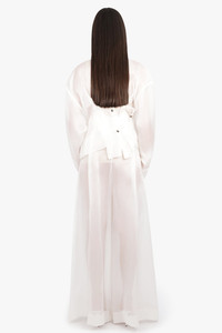 SHEER TWISTED L/S SHIRT WITH BALLOON SLEEVE DETAIL | WHITE