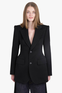 Balenciaga's 'Hourglass' blazer is named for its sculptural silhouette, which became one of the founder's most iconic signatures. It's expertly tailored from wool and fastens with two buttons at the single-breasted front. Fabrication: 100% Wool Size and Fit Nikita: Model is 174cm/5’7” and is wearing a size FR34 Model Measurements: Bust: 30cm, Waist: 26.5cm, Hips 34cm French Sizing Measurements Size FR34: Bust 80cm, Waist 62cm, Hip 86cm, Length 76cm Size FR36: Bust 83cm, Waist 65cm, Hip 89cm, Length 76cm Size FR38: Bust 86cm, Waist 68cm, Hip 92cm, Length 76cm Size FR40: Bust 89cm, Waist 71cm, Hip 95cm, Length 76cm Size FR42: Bust 92cm, Waist 74cm, Hip 98cm, Length 76cm Size FR44: Bust 93cm, Waist 77cm, Hip 73cm, Length 76cm