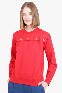 The Bottega Veneta Open Button Knit Top in Lipstick is a round neck knit with long sleeves. This style features a button fastening cutout at the front and a ribbed collar, cuffs on the arm and hem. Fabrication: 100% Merino Wool Size and Fit Sophie: Model is 189cm/6’02” and is wearing a size XS Model Measurements: Bust: 76cm, Waist: 61cm, Hips 87.5cm Fits true to size Measurements Size XS: Bust 98cm, Waist 94cm, Hip 92cm, Length 61cm Size S: Bust 104cm, Waist 100cm, Hip 98cm, Length 61cm Size M: Bust 110cm, Waist 106cm, Hip 104cm, Length 61cm