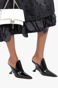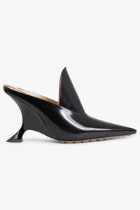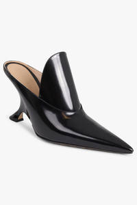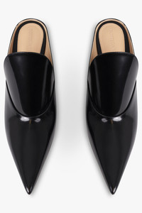 Features of the Rocket Mule Pump include a soft vinyl patent leather upper with rubber and leather sole, slip-on styling, leather footbed and lining, and a pointed toe with structural wedge. Fabrication: 100% Leather Size and Fit Fits true to size Italian Sizing Heel Height: 90mm