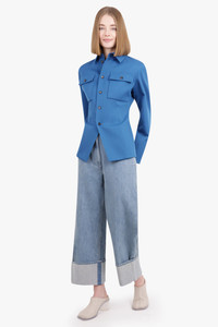 Felted wool Gabardine Shirt Jacket features a metal knot button closure and a regular fit. Fabrication: 100% Virgin Wool Size and Fit Nikita: Model is 174cm/5’7” and is wearing a size IT38 Model Measurements: Bust: 30cm, Waist: 26.5cm, Hips 34cm Italian Sizing True to Size Measurements Size IT38: Bust 90cm, Waist 72cm, Hips 80cm, Length 67cm Size IT40: Bust 94cm, Waist 76cm, Hips 84cm, Length 67cm Size IT42: Bust 96cm, Waist 78cm, Hips 86cm, Length 67cm