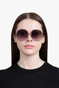 - Round sunglasses in gold metal & bio-based nylon - 100% UVA and UVB protection - Not prescription friendly - Chloe logo engraved on the temples - Filter category: 1 - Gold metal frame - Gradient black, light gray & gray lenses