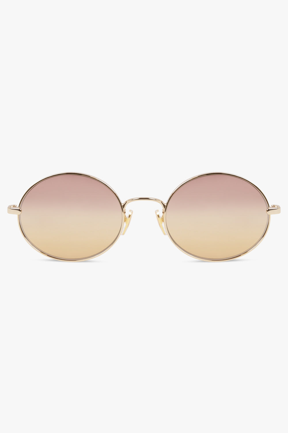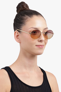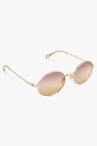 The Chloe Aly small oval sunglasses combine a lightweight gold-tone metal frame with softly curved lines and triple gradient brown lenses. A balance of modern refinement and everyday elegance, the design is completed with the engraved Chloe logo on the left lens and temples. - Fabrication: Gold metal & bio-based nylon - Gradient brown lenses - 100% UVA and UVB protection - Adjustable nose pads for comfort - Prescription friendly - Chloe logo engraved on the temples - Lens width: 55 mm (2.2") Bridge: 20 mm (0.8") Temple: 140 mm (5.5") A sophisticated accessory with a heritage-inspired finish, pair with other Chloe heritage items to complete the look.
