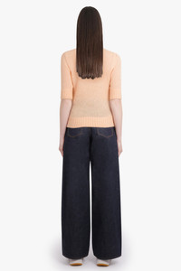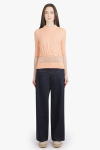This luxurious knit embodies the tension between softness and structure, merging a classic silhouette with precise detailing. Crafted from a refined wool-silk blend, it features the signature Chloe embroidery delicately satin-stitched at the chest, a subtle mark of elevated everyday dressing. The minimalist round collar and 3/4 sleeves frame the form with quiet elegance. - Fabrication: 62% Wool, 38% Silk - Round neckline for a clean, structured line - Satin-stitched - Chloe - signature embroidery at chest - 3/4 length sleeves for refined proportion - Wool-silk blend offers lightweight warmth. Pair with denim for a sleek effortless look.