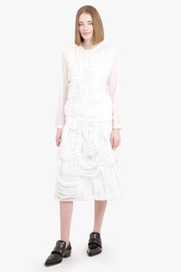 DRAPE RUCHED PANEL DRAWSTRING MIDI SKIRT | WHITE