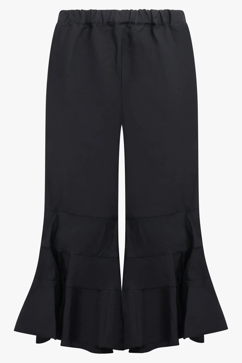 ELASTIC WAIST TIER RUFFLE HEM PANT | BLACK