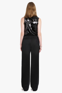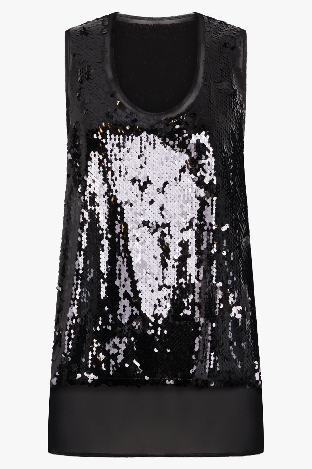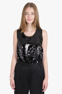FISHSCALE SEQUIN OVERLAY S/LESS TOP | BLACK