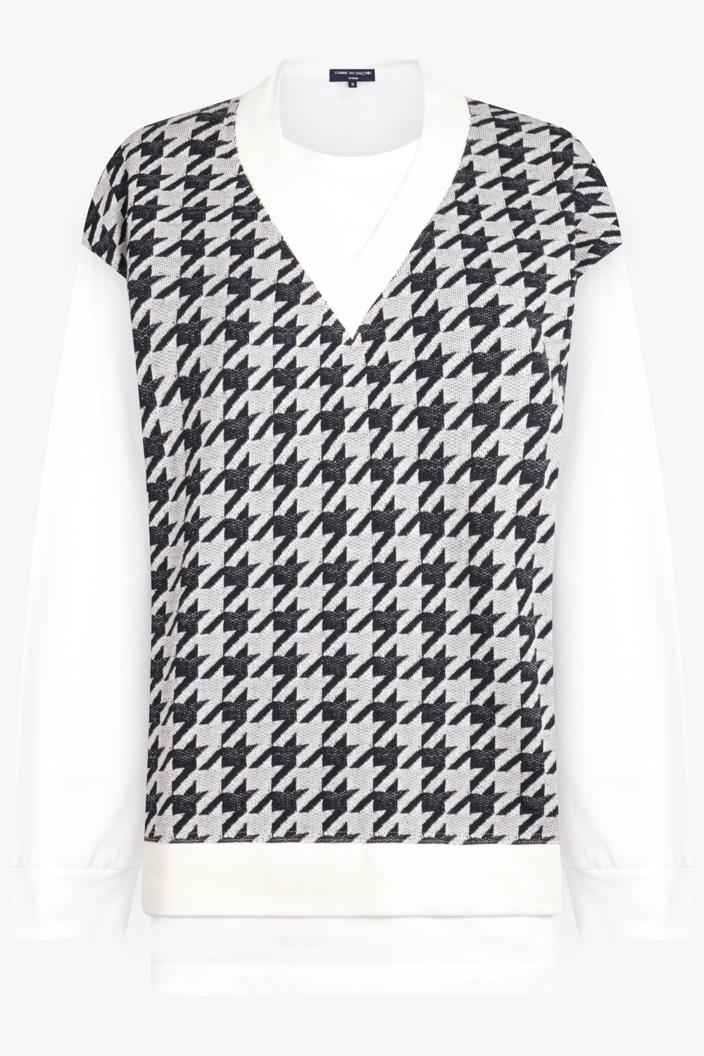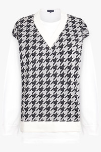 - Fabrication: 100% Cotton - jersey texture - layered design to the front - houndstooth pattern - patterned jacquard - crew neck - Long sleeves - straight hem Size and Fit Sophie: Model is 179cm/5’10” and is wearing a size S Model Measurements: Bust: 76cm, Waist: 61cm, Hips 87.5cm Fits true to size Measurements S: Bust 118cm, Waist 118cm, Hip 118cm, Length 76cm M: Bust 122cm, Waist 122cm, Hip 122cm, Length 76cm L: Bust 128cm, Waist 128cm, Hip 128cm, Length 76cm XL: Bust 132cm, Waist 132cm, Hip 132cm, Length 76cm