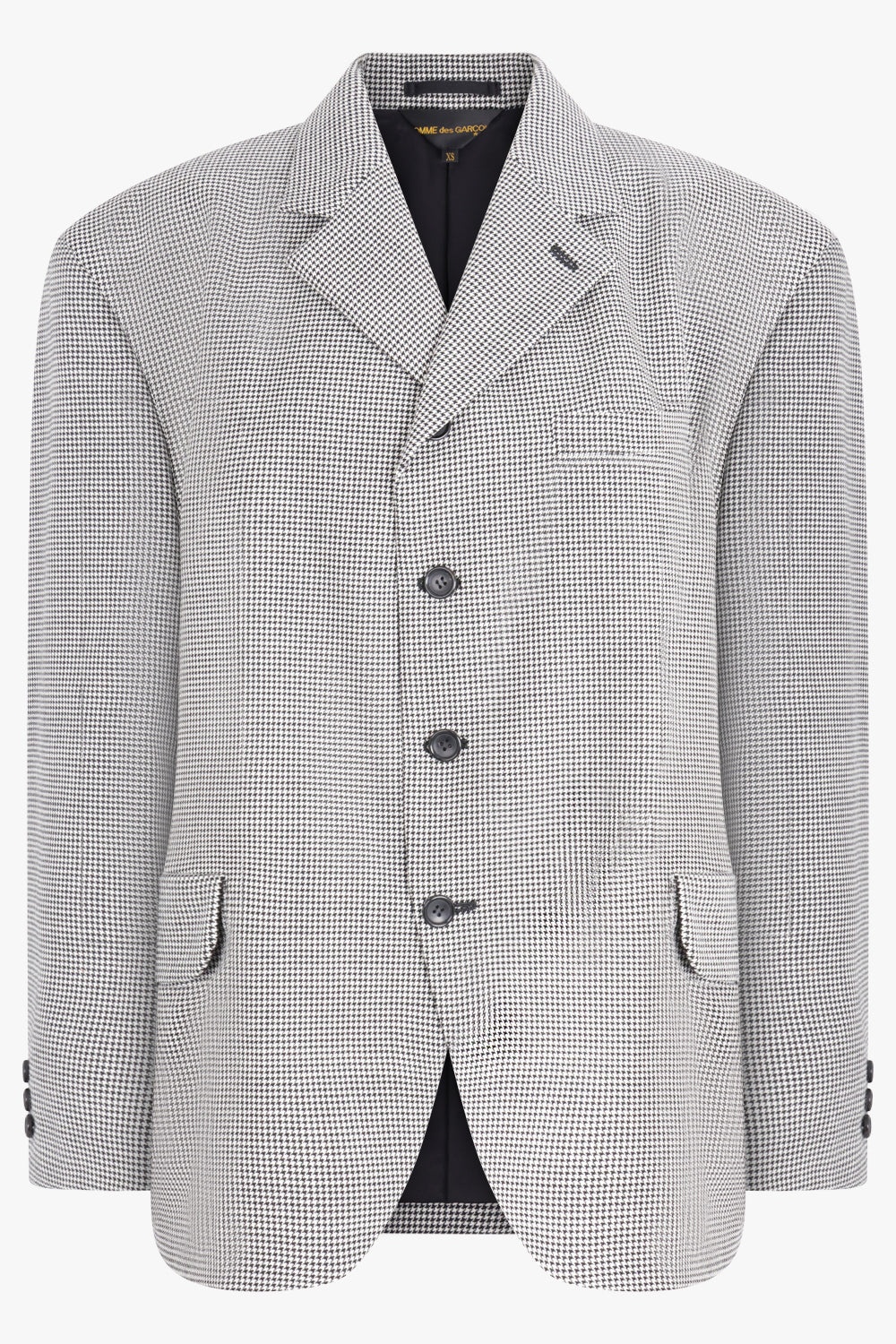 The Wool houndstooth single-breasted wool blazer from Comme des garcons featuring houndstooth pattern, dart detailing, wide notch lapels, chest welt pocket, front button fastening, two side flap pockets, buttoned-cuff sleeves, full lining and a central rear vent. Fabrication: Wool 100% Size and Fit Sophie: Model is 189cm/6’02” and is wearing a size 32 Model Measurements: Bust: 76cm, Waist: 61cm, Hips 87.5cm Oversized fit, Runs big Measurements Size XS: Bust 122cm, Waist 122cm, Hip 122cm, Length 77cm Size S: Bust 126cm, Waist 126cm, Hip126cm, Length 77cm Size M: Bust 128cm, Waist 128cm, Hip 128cm, Length 77cm