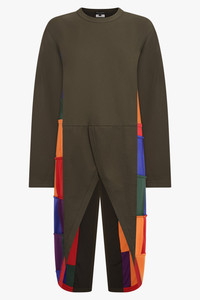 Make a statement with the L/S Crossover Tails Panel T-Shirt in khaki/multi, a bold piece that stands out in any wardrobe. Featuring an innovative crossover tails panel, this long-sleeve tee combines sculptural tailoring with dynamic proportions for a striking, fashion-forward silhouette. The contrasting black and multi panels add depth and visual interest, while the relaxed fit ensures comfort and ease of wear. Perfect for those looking to elevate an everyday look, this piece transforms a simple outfit into a memorable statement. - Fabrication: 100% Polyester - Long-sleeve silhouette with relaxed fit - Crossover tails panel for sculptural, standout detail - Contrasting khaki and multi panels for visual depth - Clean, precise tailoring - Versatile design for elevated everyday styling Pair it with a short or skirt to highlight the unique shape and bold panels. Size and Fit Tiah: Model is 178cm/5’9” and is wearing a size S Model Measurements: Bust: 86cm, Waist: 69cm, Hips 90.5cm Fits true to size Measurements S: Bust 98cm, Waist 98cm, Hip 98cm, Length 111cm M: Bust 104cm, Waist 104cm, Hip 104cm, Length 111cm