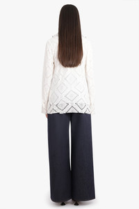 LAYERED L/S SHEER X LACE TOP | OFF WHITE