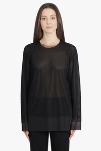 LAYERED L/S SHEER X NETTED MESH TOP | BLACK