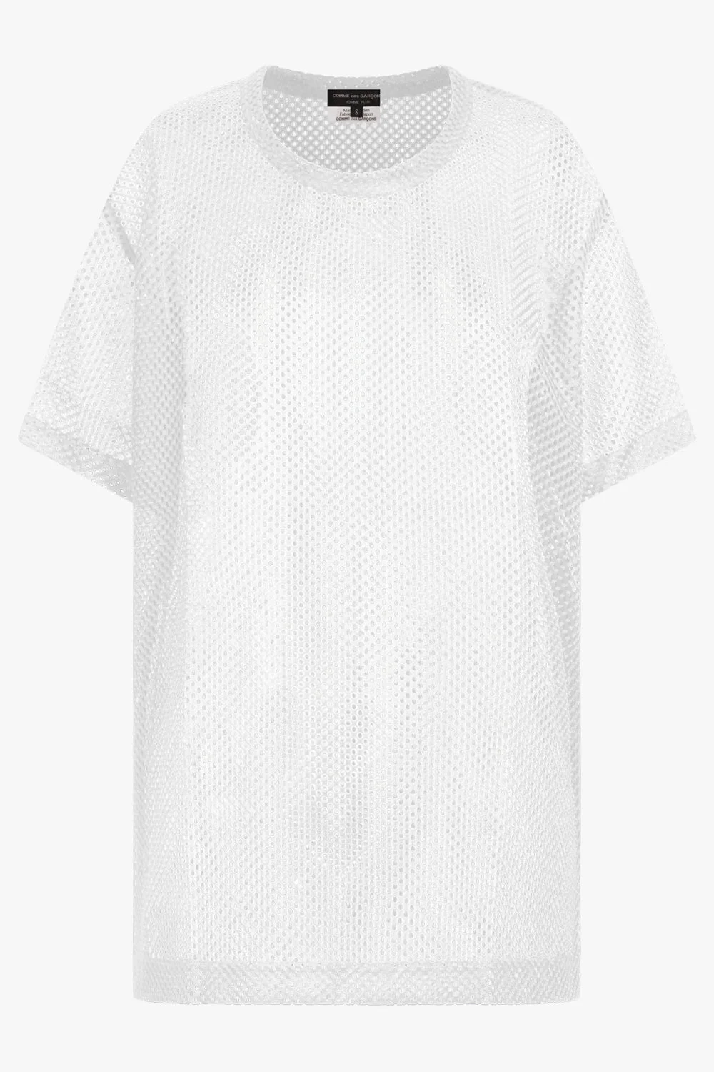 A modern, versatile piece, the S/S Mesh T-Shirt in white combines casual comfort with contemporary detailing. Crafted from lightweight mesh fabric, this short-sleeved tee offers breathability and a relaxed fit, making it perfect for everyday wear. Subtle mesh texture adds visual interest, while carefully finished edges ensure a clean and polished look. The classic black colourway makes it easy to style, allowing this piece to serve as a wardrobe staple with understated appeal. - Fabrication: 100% Polyester - Lightweight mesh fabric for comfort and breathability - Short-sleeve silhouette with relaxed fit - Subtle mesh texture for visual interest - Clean finished edges for a polished look - Classic white colourway for versatile styling Style it with tailored trousers, high-waisted jeans, or a sleek skirt to create multiple contemporary looks. Size and Fit Tiah: Model is 178cm/5’9” and is wearing a size S Model Measurements: Bust: 86cm, Waist: 69cm, Hips 90.5cm Fits true to size Measurements XS: Bust 102cm, Waist 102cm, Hip 102cm, Length 70cm S: Bust 106cm, Waist 106cm, Hip 106cm, Length 70cm