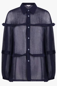 SHEER BALLOON SLEEVE PANEL DETAIL L/S SHIRT | NAVY