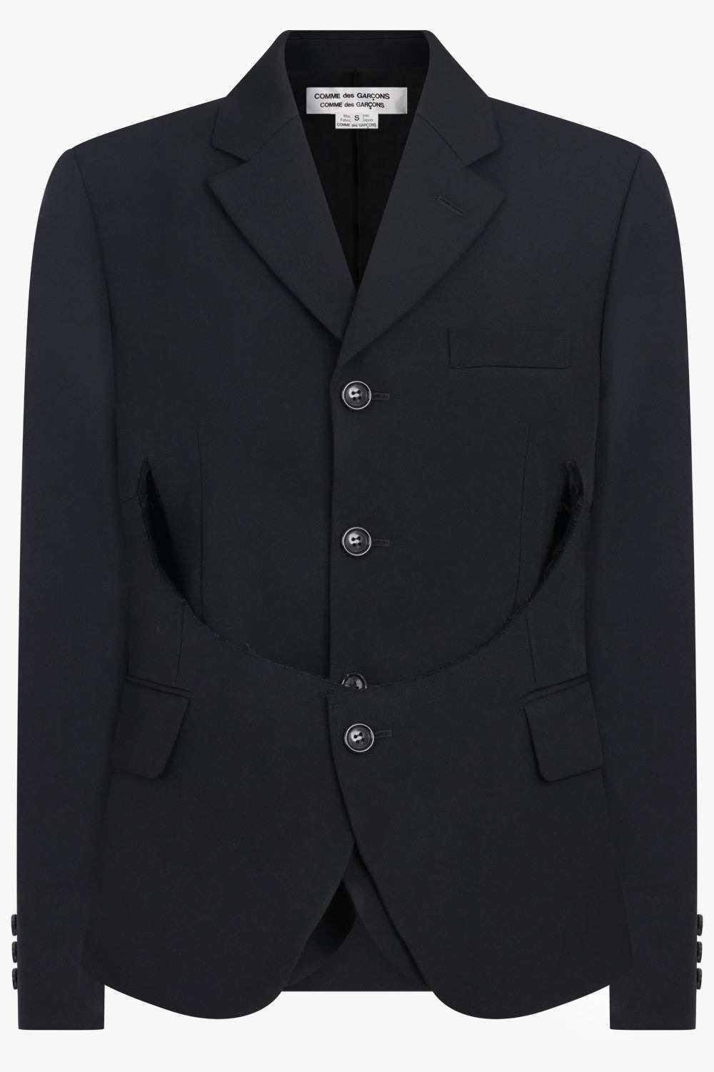 TAILORED JACKET WITH ROUNDED SLIT DETAIL | BLACK