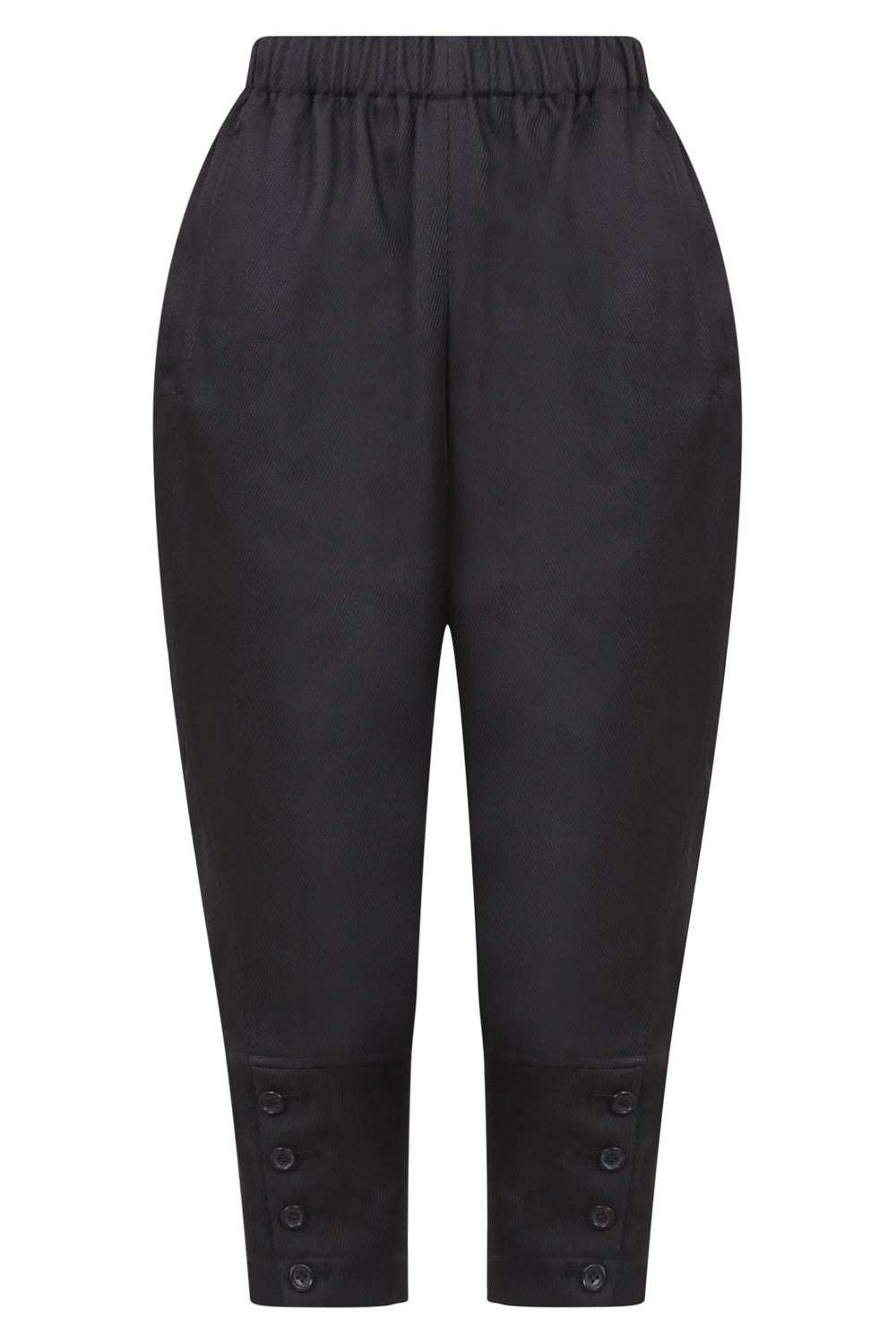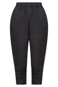 The Comme Des Garcons Cuff Pants in Black feature an elastic waistband, two side pockets, two back pockets, and a cuffed hem with buttons. Fabrication: 100% Polyester Size and Fit Emily: Model is 176/5’9.5” and is wearing size S Model Measurements: Bust 79cm, Waist 65cm, Hips 93cm Measurements Size XS: Waist 68cm, Hip 86cm, Length 80cm Size S: Waist 72cm, Hip 90cm, Length 80cm Size M: Waist 76cm, Hip 94cm, Length 80cm