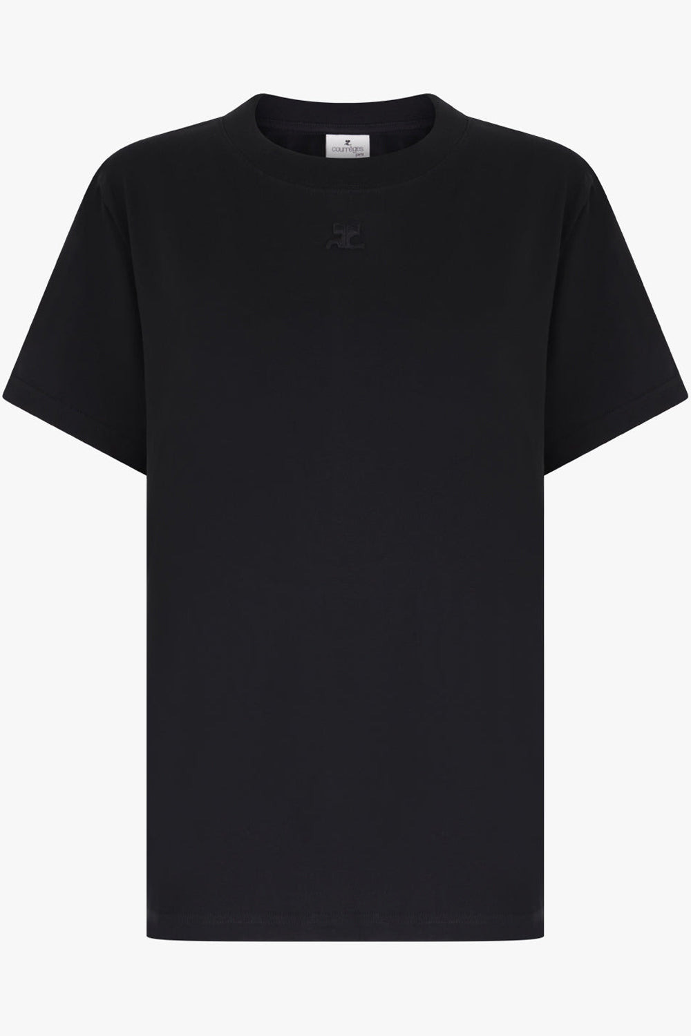 Short-sleeved, crew neck AC T-Shirt embellished with a Courreges logo on the front and the back label, as well as embroidered detailing. Fabrication: 100% Cotton Size and Fit Alex: Model is 183cm/6’00” and is wearing a size S Model Measurements: Bust: 81cm, Waist: 75cm, Hips 81cm Fits true to size Measurements S: Bust 108cm Waist 108cm, Hip 108cm, Length 69cm M: Bust 112cm, Waist 112cm, Hip 112cm, Length 69cm L: Bust 116cm, Waist 116cm, Hip 116cm, Length 69cm