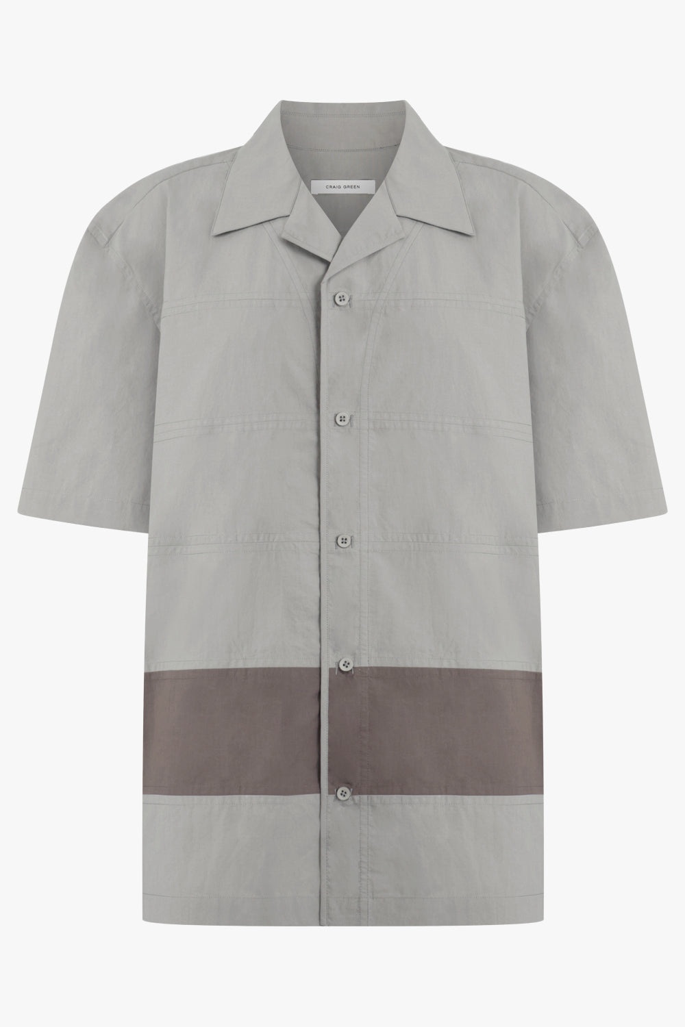Green/blue cotton panelled short-sleeve shirt from CRAIG GREEN featuring colour-block panelled design, classic collar, front button fastening, short sleeves and straight hem. Fabrication: 100% Coton Size and Fit Nat: Model is 189cm/6’02” and is wearing a size M Model Measurements: Bust: 96.5cm, Waist: 78cm, Hips 89cm Fits true to size Measurements Size S: Bust 106cm, Waist 114cm, Hip 118cm, Length 71cm Size M: Bust 110cm, Waist 118cm, Hip 122cm, Length 72cm Size L: Bust 114cm, Waist 121cm, Hip 126cm, Length 73cm
