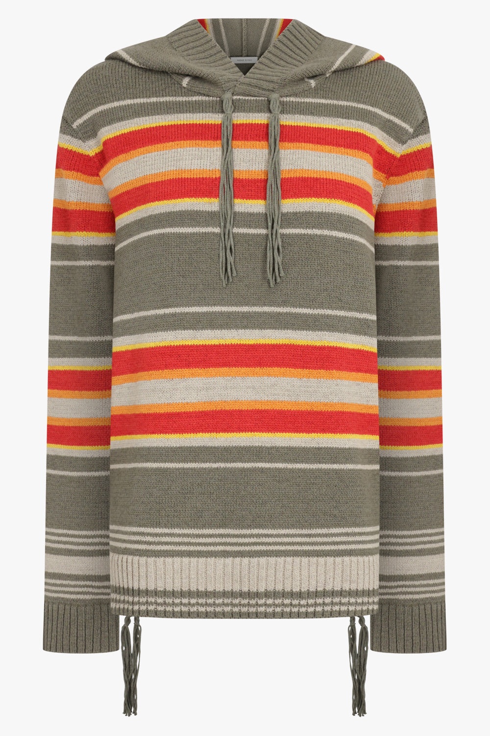 KNIT HOODIE | OLIVE MULTI STRIPE