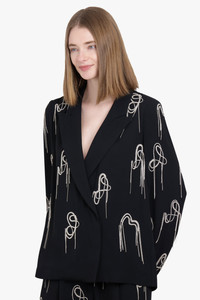 - Fabrication: - 73% acetate, 27% viscose - Oversized fit - Lined - Double-breasted - Crystal hanging embellishments - Front fabric-covered button closure Size and Fit Sophie: Model is 179cm/5’10” and is wearing a size S Model Measurements: Bust: 76cm, Waist: 61cm, Hips 87.5cm Fits true to size