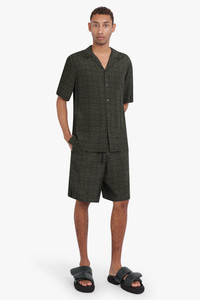 Dries Van Noten's Carltone Shirt in bottle green is a relatively light-weight shirt with a silky texture. Featuring a tailored collar with short sleeves and button closures. Fabrication: 100% Viscose Size and Fit Alex: Model is 188 cm/6’2” and is wearing a size IT48 Model measurements: Bust 94cm, Waist 80 cm, Hip 118 cm