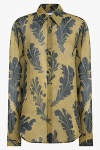 - Fabrication: 100% Viscose - Made using the Suminagashi technique, - a traditional Japanese marbling art form that creates patterns on water to transfer to fabric. - Tight fit - Front button closure - Classic collar - Buttoned cuffs