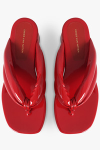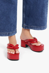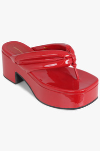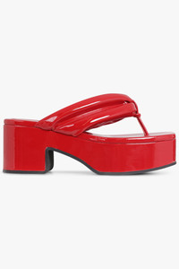 - Fabrication: Sole: 100% Rubber. Upper: 100% Leather - Platform heels - Slip-on - Thong like structure - Patent leather Size and Fit Heel height: 60mm Italian sizing Fits true to size