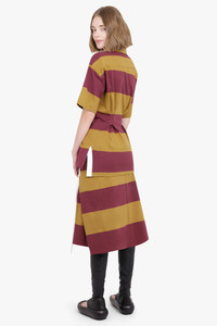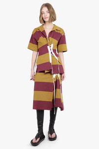 CROSS STITCH TIE SIDE DETAIL STRIPE MIDI SKIRT | MUSTARD