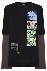 - Fabrication: 100% Cotton - Crewneck - Drop shoulder - Contrast, layered sleeves - Graphic print and slogan at front - Relaxed fit Size and Fit Model is 184cm, 6’1 and in is wearing a size M Model measurements: Bust: 100cm, Waist 85cm, Hips 88cm Fits True to size Measurements S: Bust 134cm, Waist 134cm, Hip 134cm, Length 76cm M: Bust 136cm, Waist 136cm, Hip 136cm, Length 76cm L: Bust 150cm, Waist 150cm, Hip 150cm, Length 76cm
