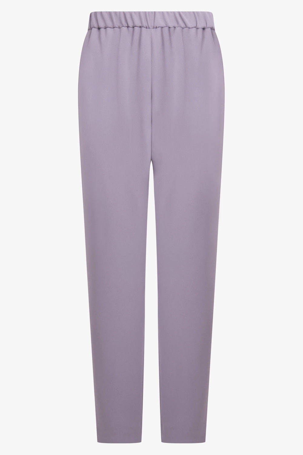 - Fabrication: 100% Polyester - High-rise - Elasticated waist - Tapered legs folded pleats down the centre - Side slit pockets Size and Fit Sophie: Model is 179cm/5’10” and is wearing a size FR36 Model Measurements: Bust: 76cm, Waist: 61cm, Hips 87.5cm French sizing Fits true to size