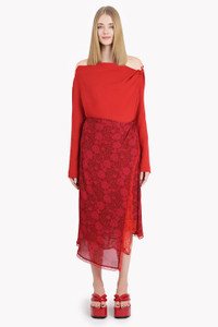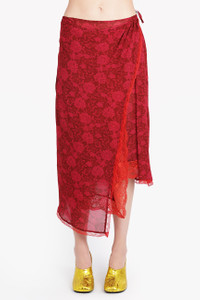 SANNE FLORAL PRINT MIDI SLIT SKIRT | CHERRY RED