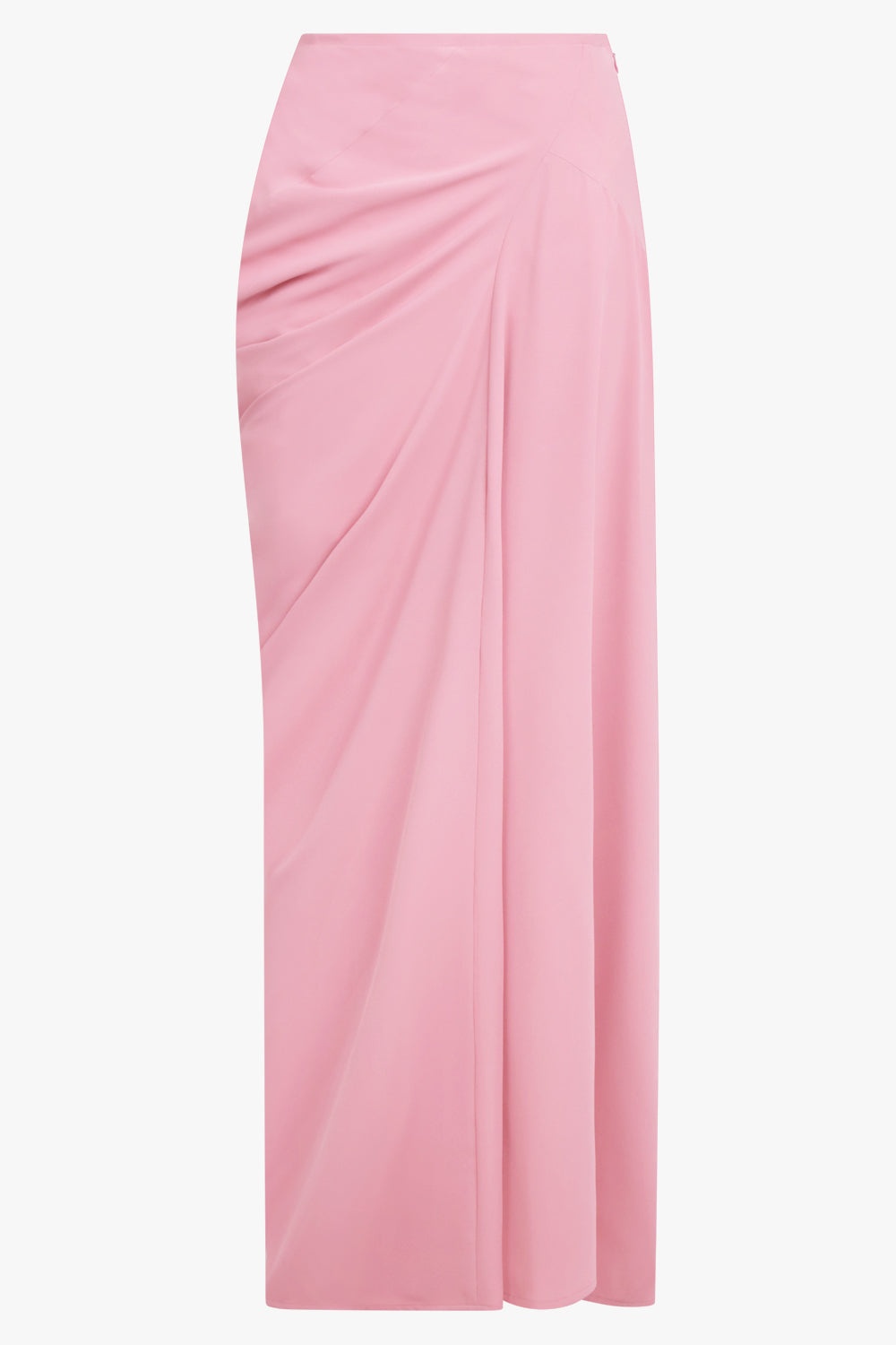 SAREN ASYMMETRIC RUCHED MAXI SKIRT | PINK