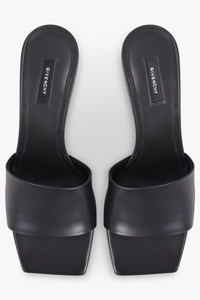 A bold expression of modern luxury, the 65MM Tape Heel Mule by Givenchy fuses refined leather craftsmanship with striking metallic detailing. Crafted from smooth calfskin leather, this heeled mule features the house’s distinctive Tape line, defined by clean lines and sculptural form. A squared toe lends a contemporary edge, while the thick heel—covered in textured gold-finish metal and accented with GIVENCHY Paris 1952 in black enamel—creates a statement finish. Thoughtful rubber pads on the outsole provide added grip and stability, balancing design with everyday wearability. Fabrication: Upper: 100% calfskin leather; lining: 100% cowhide leather Heeled mule silhouette in smooth calfskin leather Squared toe for a modern, architectural profile Thick heel with textured gold-finish metal and GIVENCHY Paris 1952 black enamel detail GIVENCHY label on the leather insole for a signature finish Rubber pads on the outsole to help prevent slipping Style with Givenchy staples for a cohesive, contemporary look. Size and Fit Italian sizing. Fits true to size. Measurements 65MM Heel