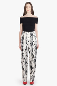 Embodying sensitivity and power, this sleeveless off-the-shoulder top in a deep black shade is crafted from a luxurious blend of viscose, polyester, polyamide, and elastane. The slim fit silhouette sculpts with precision, while the elastic fiber composition offers structured comfort. Its minimalist yet striking design elevates everyday elegance, blending soft armour with dynamic beauty. - Fabrication: 80% Viscose, 15% Polyester, 4% Polyamide, 1% Elastane - Deep black colour - Sleeveless with an off-the-shoulder neckline - Slim fit for a sleek, sculpted silhouette - Crafted in elastic fiber for both comfort and structure An essential for empowering the everyday with refined, multi-layered hyper-femininity. Pair with Givenchy shoes to finish the look. Size and Fit Tiah: Model is 178cm/5’9” and is wearing a size S Model Measurements: Bust: 86cm, Waist: 69cm, Hips 90.5cm Form fitting, stretchy material. Recommended to take usual size. Measurements S: Bust 66cm, Waist 56cm, Hip 74cm, Length 51cm S: Bust 68cm, Waist 58cm, Hip 76cm, Length 51cm