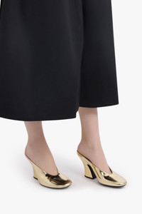 SCULPTED HEELED MULES IN MIRROR EFFECT LEATHER