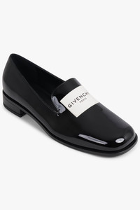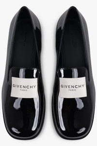 These sleek Givenchy Tux loafers are crafted in high-shine patent calfskin leather with a minimalist silhouette and softly squared toe. Designed in a deep onyx black, the upper features a stitched GIVENCHY Paris water-repellent fabric label — a signature of the Tux line — while the insole is debossed with the house logo. A refined option for formal or elevated everyday wear, this loafer delivers structured polish with subtle utilitarian appeal. - Fabrication 100% calfskin leather - Patent deep onyx black - Rounded square toe silhouette - Stitched GIVENCHY Paris water-repellent fabric label - Debossed logo on smooth leather insole - Slip-on style - Slight stacked heel - Leather outsole Style with suiting or relaxed separates to balance structure with modern ease.