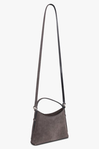 A polished reinterpretation of a house icon, the Voyou Mini Suede Bag in Dark Grey by Givenchy blends sleek sophistication with everyday versatility. Crafted in smooth, high-shine calfskin leather, this piece from the Voyou line showcases a sculpted silhouette elevated by refined hardware and subtle branding. The design features a short leather handle for hand carry and a thin removable strap that allows for effortless crossbody wear. Golden-finish metal details and engraved accents underscore the bag’s luxurious craftsmanship, while a spacious main compartment and canvas lining ensure practical ease. - Fabrication: 100% calfskin leather - Smooth, suede calfskin construction with an elevated finish - Part of the Voyou line, featuring a polished, modern silhouette - Short leather handle with a thin removable strap for crossbody versatility - GIVENCHY signature embossed on the front - GIVENCHY-engraved metal buckles with golden-finish metal details - One main compartment for everyday essentials - Canvas lining for a clean, durable interior Style it with minimalist separates for a refined, contemporary look. Size and Fit The Mini Voyou Bag is a petite, streamlined silhouette designed for essentials only. It comfortably fits a phone or a few small day-to-evening necessities, making it the perfect choice for when you want a lightweight, compact bag that won’t weigh you down. Its sleek profile allows it to be carried by hand or worn crossbody for effortless, minimal styling. Measurements 7.1 in x 5.3 in x 1.4 in