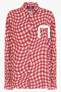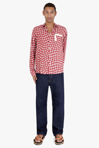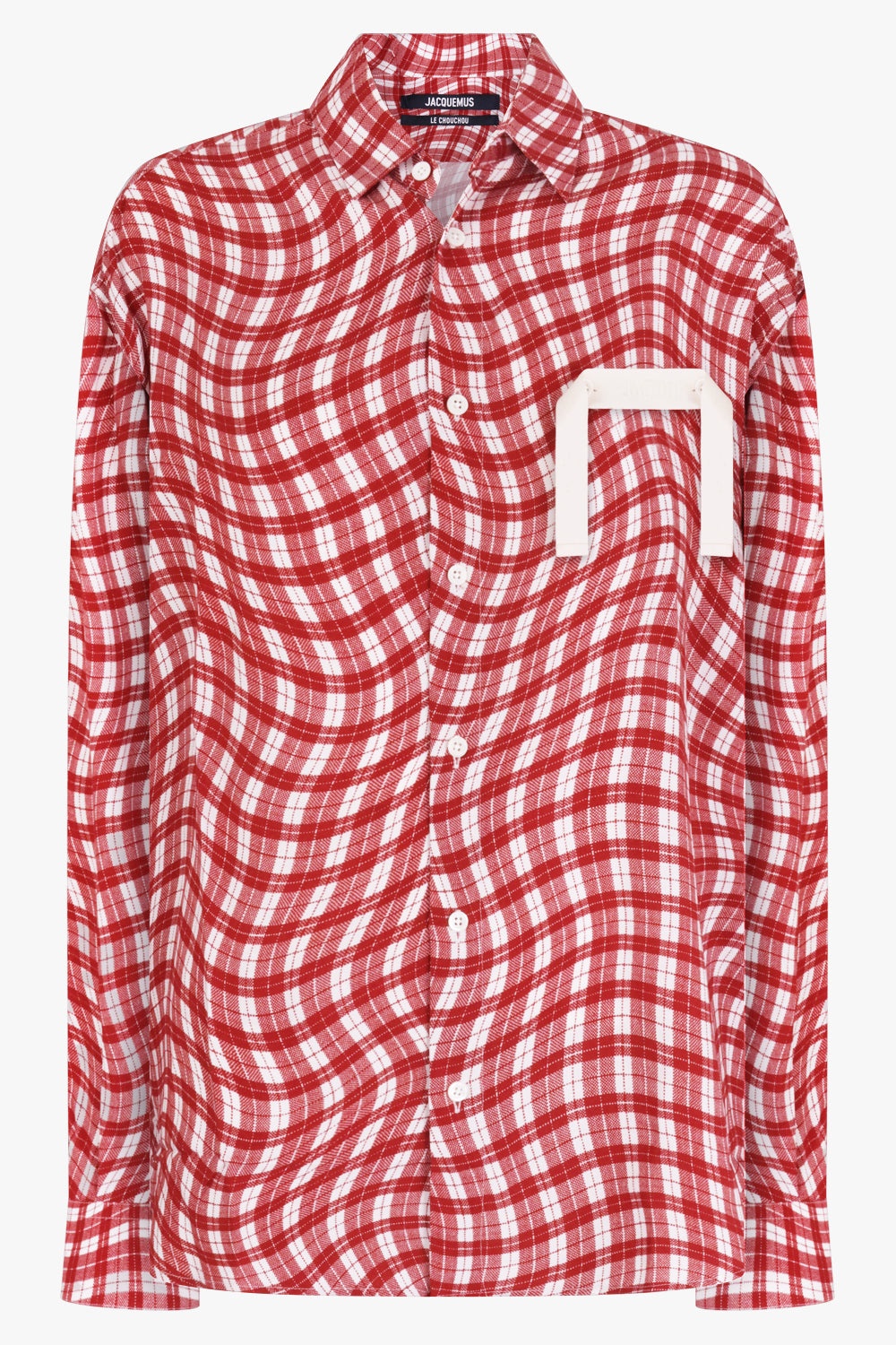La Chemise Simon Crafted from wavy checked viscose fabric, it features a straight fit, pointed collar, removable grosgrain logo ribbons on the chest, button placket, and square cuffs with mother-of-pearl buttons. The subtle dark red deform check pattern elevates any look. Fabrication: 100% Viscose Size and Fit Alex: Model is 183cm/6’00” and is wearing a size 48 Model Measurements: Bust: 81cm, Waist: 75cm, Hips 81cm Fits true to size Measurements Size 46: Bust 116cm, Waist 116cm, Hip 116cm, Length 72cm Size 48: Bust 120cm, Waist 120cm, Hip 120cm, Length 73cm Size 50: Bust 124cm, Waist 124cm, Hip 124cm, Length 73cm Size 52: Bust 128cm, Waist 128cm, Hip 128cm, Length 73cm